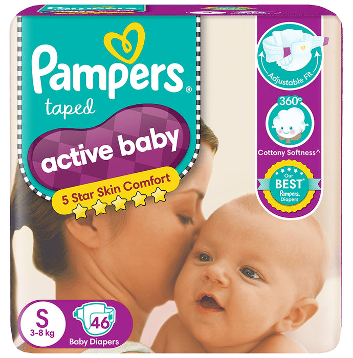 Pampers Active Baby with Comfortable Fit | Size Diaper Small packet of 46 diapers
